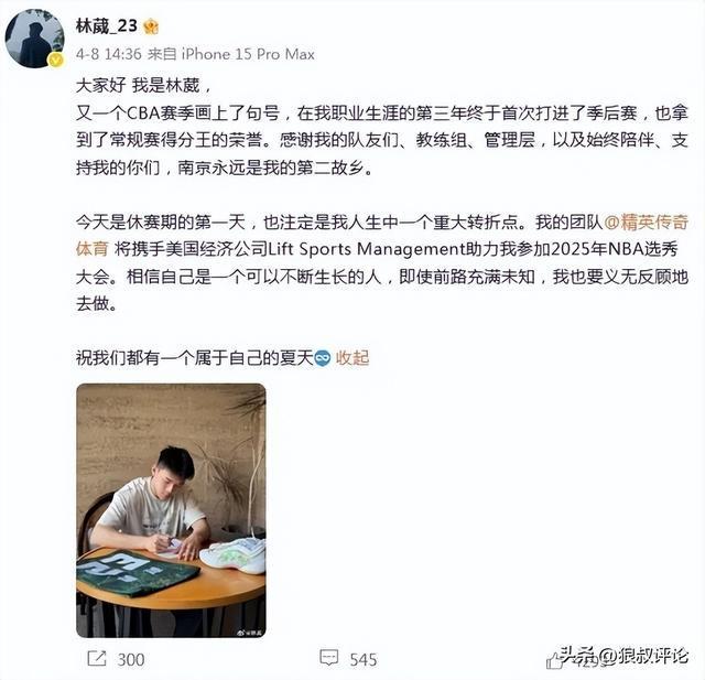 24-25赛季,南京同曦不敌新疆男篮后,林葳团队就宣布今年将会挑战NBA选秀,早早做出相关的准备。