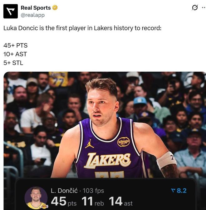 在里夫斯缺席的情况下,湖人队之所以能够完成逆转,保持与刷新数项联盟顶级纪录,核心东契奇可谓是居功至伟。