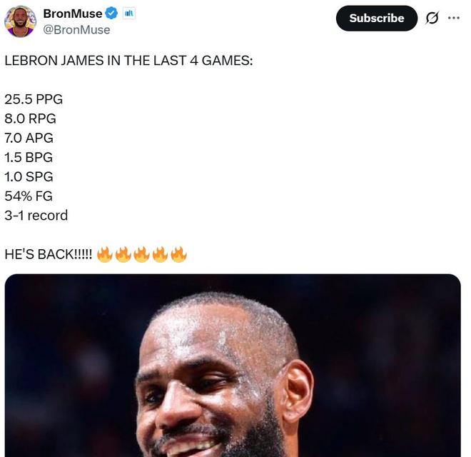 也让开季至今整体数据提升至18.6分5.8篮板7.5助攻0.8抢断0.7盖帽,投篮命中率也回暖至46.9%,40岁老詹用行动证明他还能打。