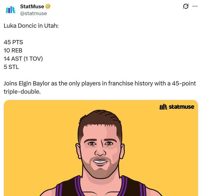凭借这样的表现,东契奇一战刷爆多项纪录,其中包含数项NBA历史级别纪录,表现含金量十足。