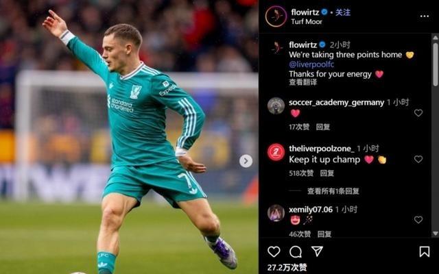 客胜伯恩利,维尔茨社媒:我们带着三分回家,感谢你们带来的能量