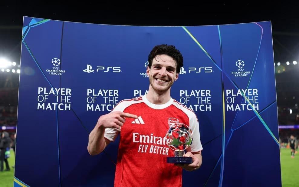 中场核心,赖斯当选阿森纳vs拜仁全场最佳球员