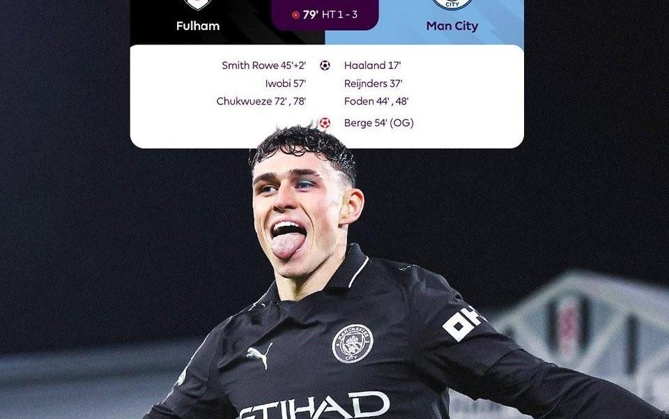 刷新纪录,曼城各项赛事对阵富勒姆已取得19连胜