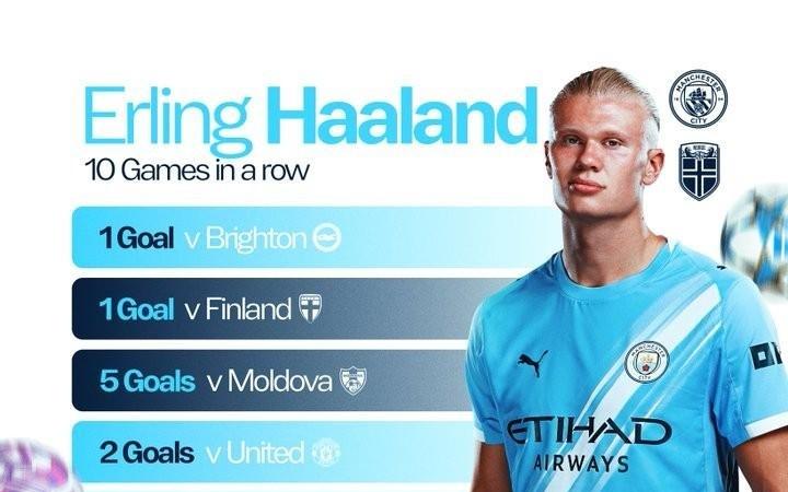 状态火热,哈兰德已经俱乐部+国家队连续10场比赛打入进球