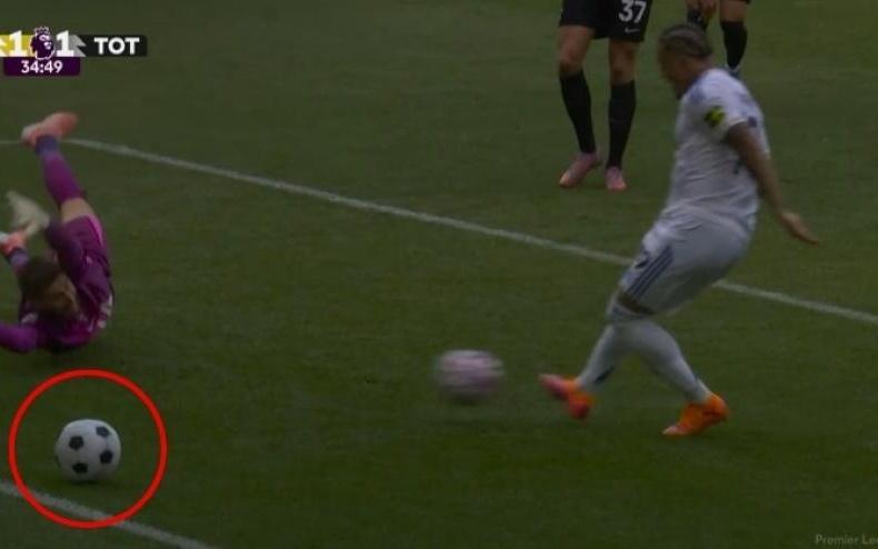 奥卡福尔为利兹进球的时候,门线附近出现了一个沙滩球