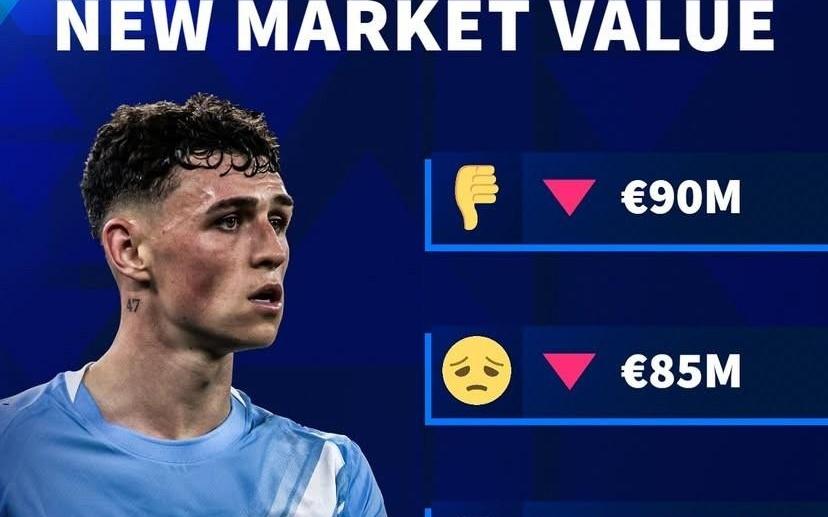 德转预热福登身价:全跌幅状态,最高9000万欧最低7500万