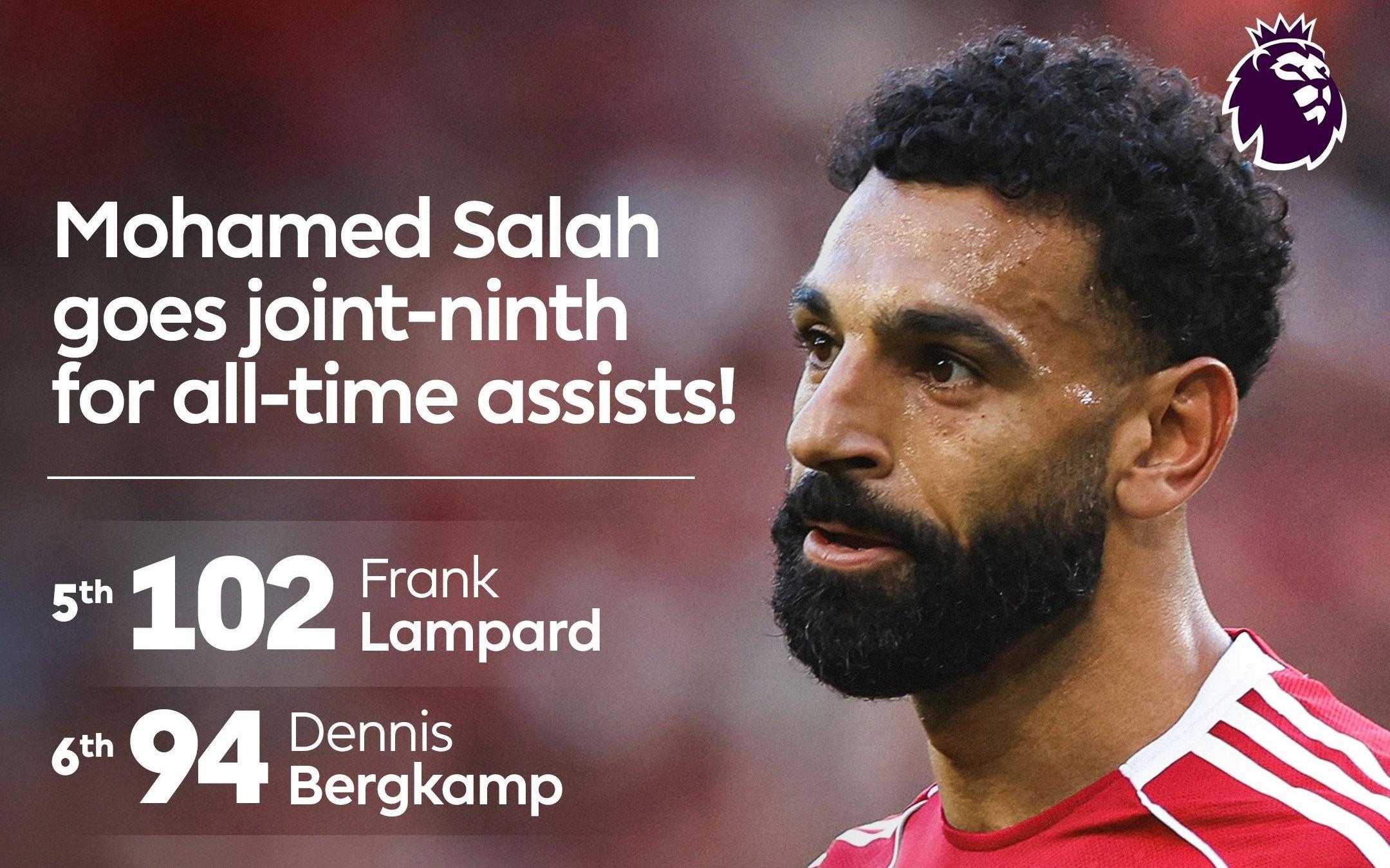 助攻赫拉芬贝赫破门,萨拉赫英超助攻数升至并列历史第九位