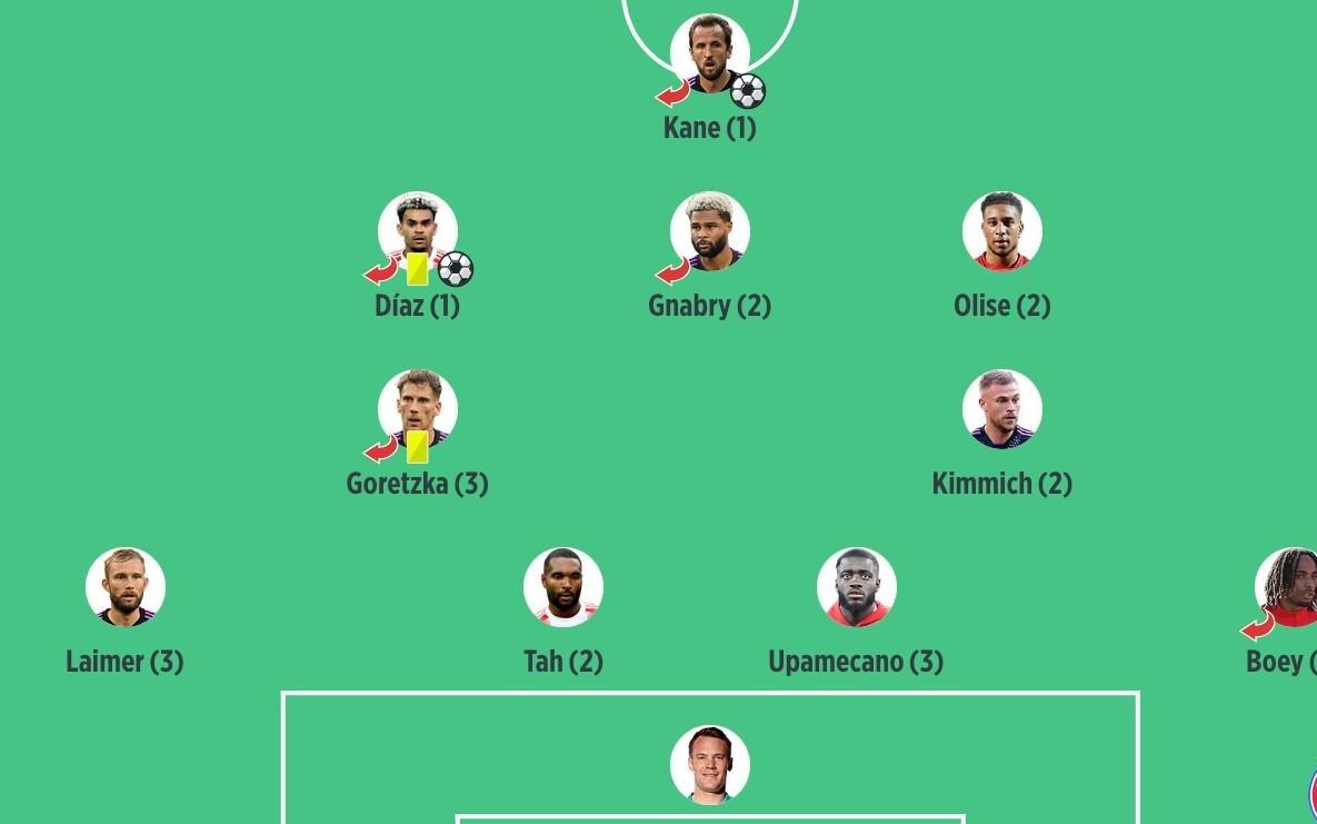 拜仁30客胜法兰克福评分:凯恩、路易斯迪亚斯1分最高