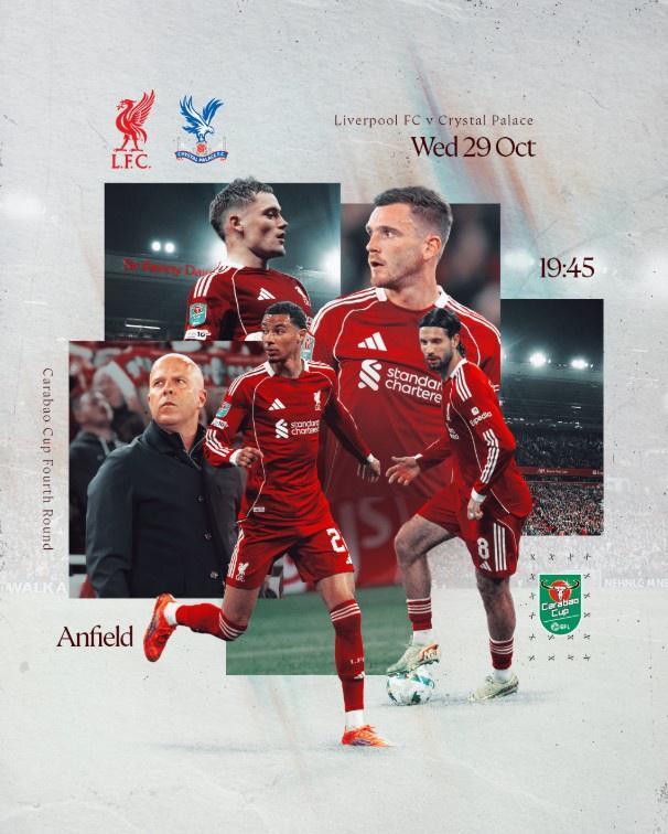 雷速体育10月29日宣 北京时间10月30日晚凌晨3:45,英联杯第4轮,利物浦将主场对阵水晶宫。